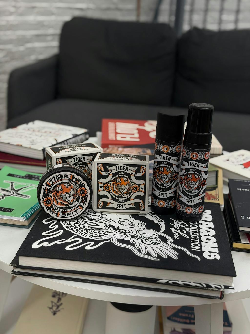 ACERCA DE TIGER SPIT : Nos esforzamos continuamente por distribuir productos de alta calidad que apoyen y mejoren la industria del tatuaje. Nuestros productos se dirigen a una nueva generación de personas y artistas por igual, apasionados por sus tatuajes y por protegerlos.